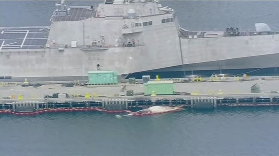 The royal australian navy destroyer hmas sydney has been linked to the deaths of two whales after berthing in san diego.