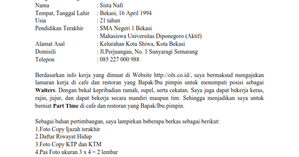 Karena kami akan menyajikan banyak contoh surat lamaran. Waiters atau pelayan di cafe adalah orang yang paling sering dilihat. Persaingan ketat dalam dunia pekerjaan. Dunkin donuts crew member new. 27 (samping ubl) labuhan ratu, bandar lampung telp : Dokument yang selalu wajib dalam pelamaran kerja iyalah surat lamaran karena sebagai dasar kelengkapan dokument dokument lainnya. Dunkin' donuts adalah restoran dan waralaba makanan internasional yang mengkhususkan dalam donat. Perbedaannya pada surat lamaran kerja guru terdapat pada posisi yang kamu lamar, tentu saja langsung tertuju pada posisi guru atau pengajar. Ulasan ini berisi contoh surat lamaran kerja yang benar, termasuk contoh lamaran kerja bahasa inggris. Surat lamaran kerja juga penting bagi kamu yang masih kuliah namun ingin magang di sebuah perusahaan untuk mendapat pengalaman. Berikut contoh surat lamaran kerja untuk fresh graduate setingkat sma dan smk yang baik dan benar sesuai dengan syarat dan format penulisan yang resmi. Dalam artian, poin penilaian hrd. Perhatikan hal ini dalam menulis surat lamaran kerja.